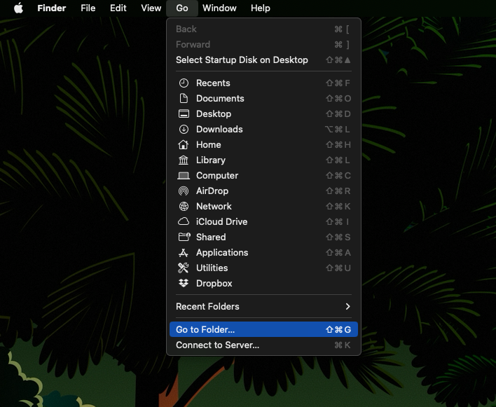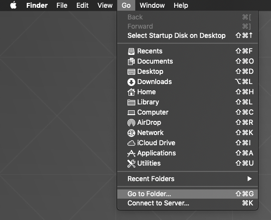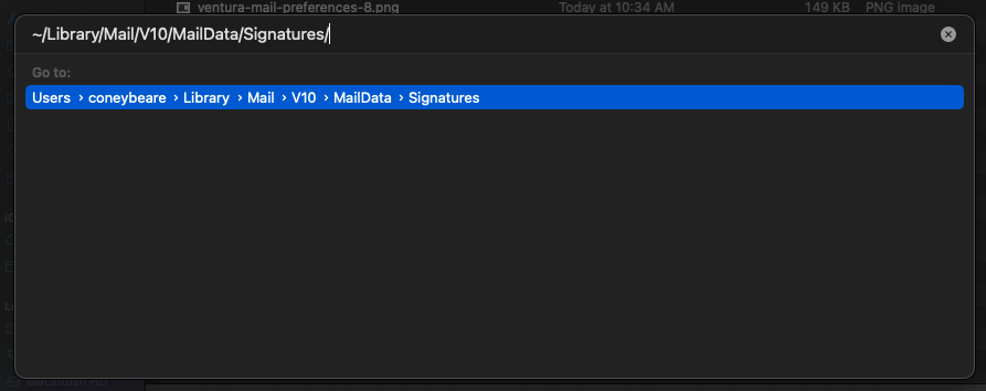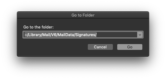 Luckily for you, we can use Finder to open the signature file we need. In Finder, select the menu bar item Go > Go to Folder...
