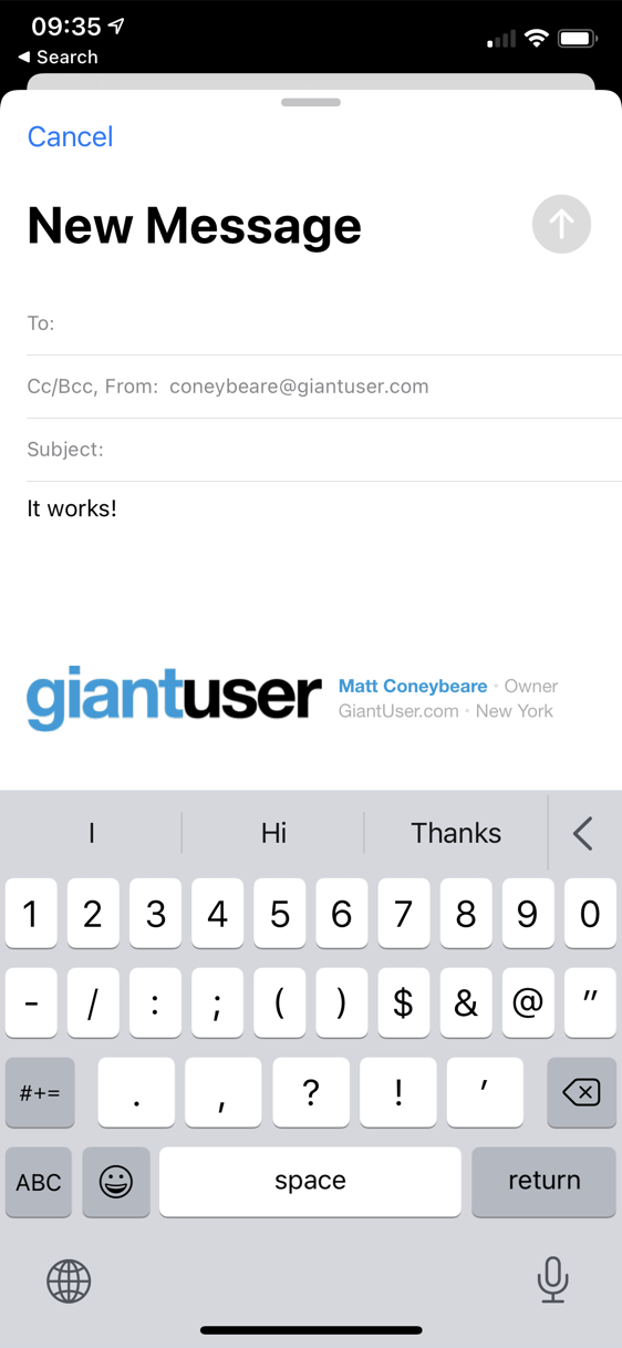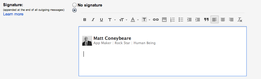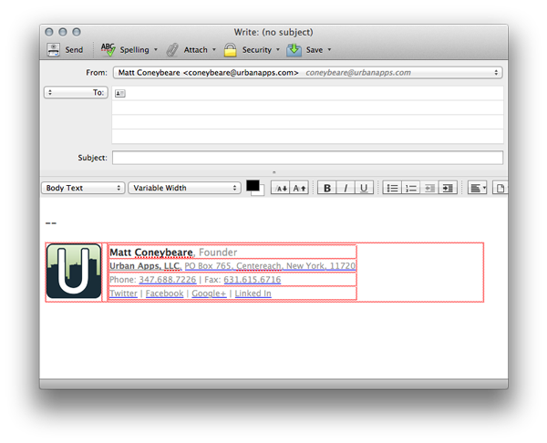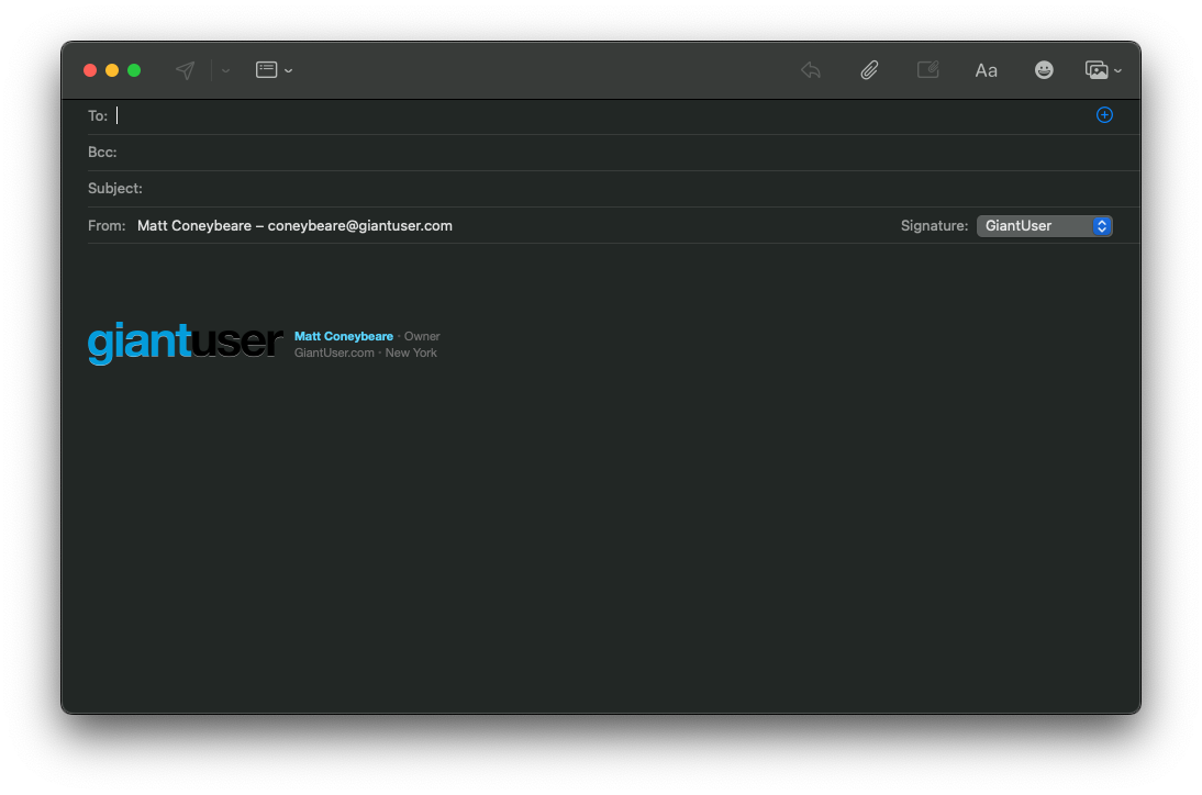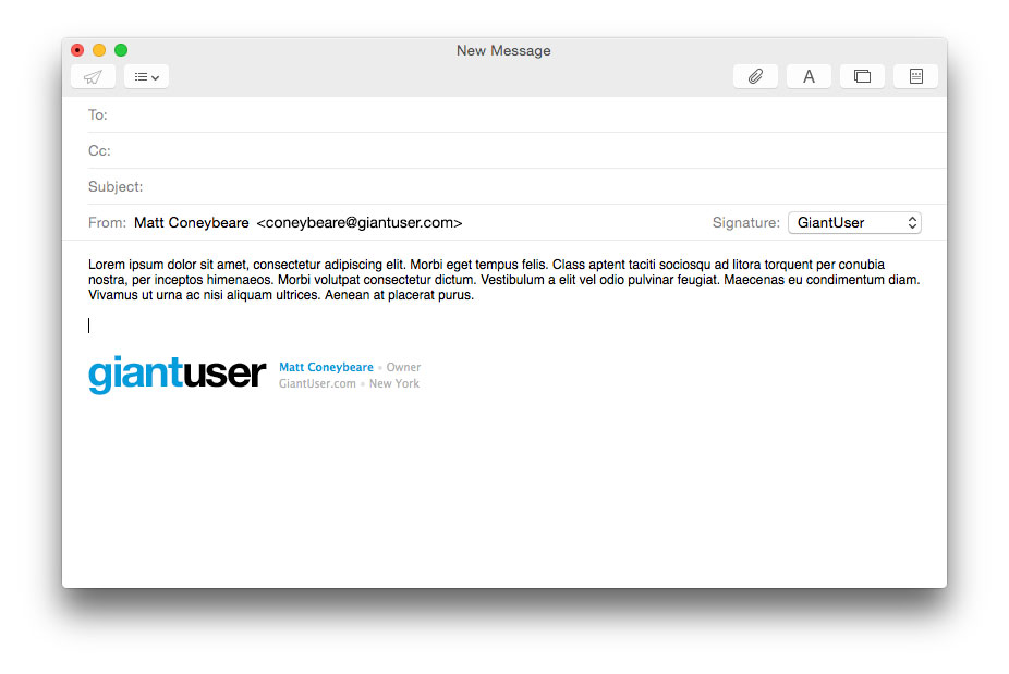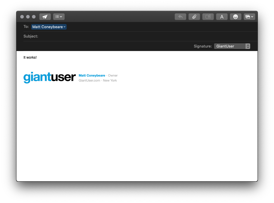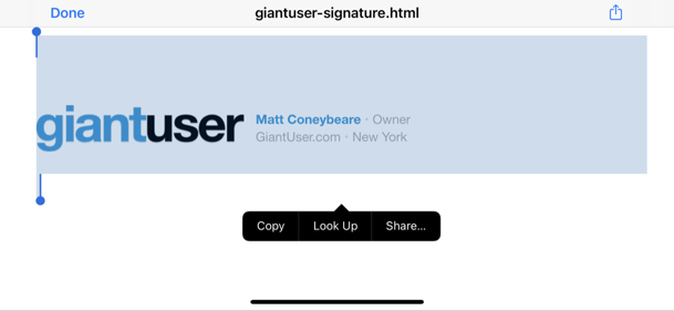 When your signature design and implementation is finished GiantUser will provide you with a packet containing the design files and most importantly, an HTML file containing the code. HTML is essentially a set of instructions that tell a web browser, or email program, how and what to display.