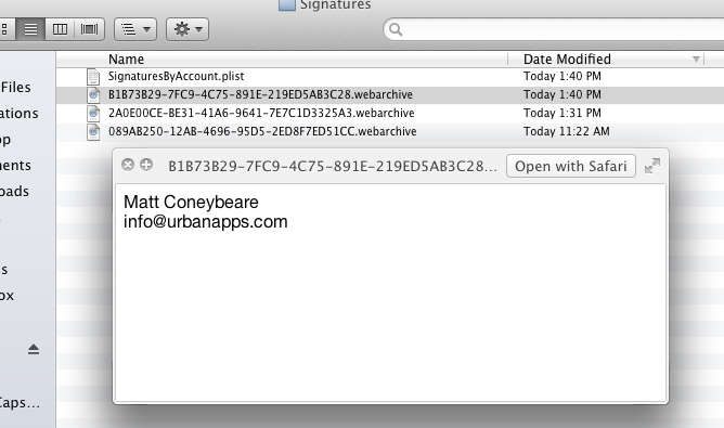 Look at the file names and notice the ones that end in .mailsignature. These are the files we are interested in working with.