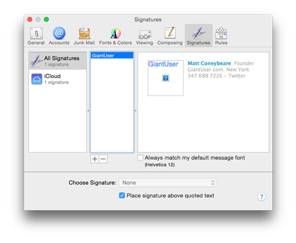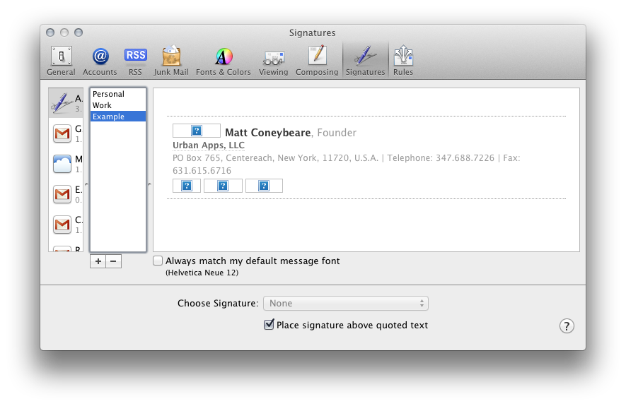 placeholder text you entered earlier in the Mail.app Preferences panel.