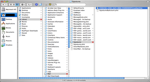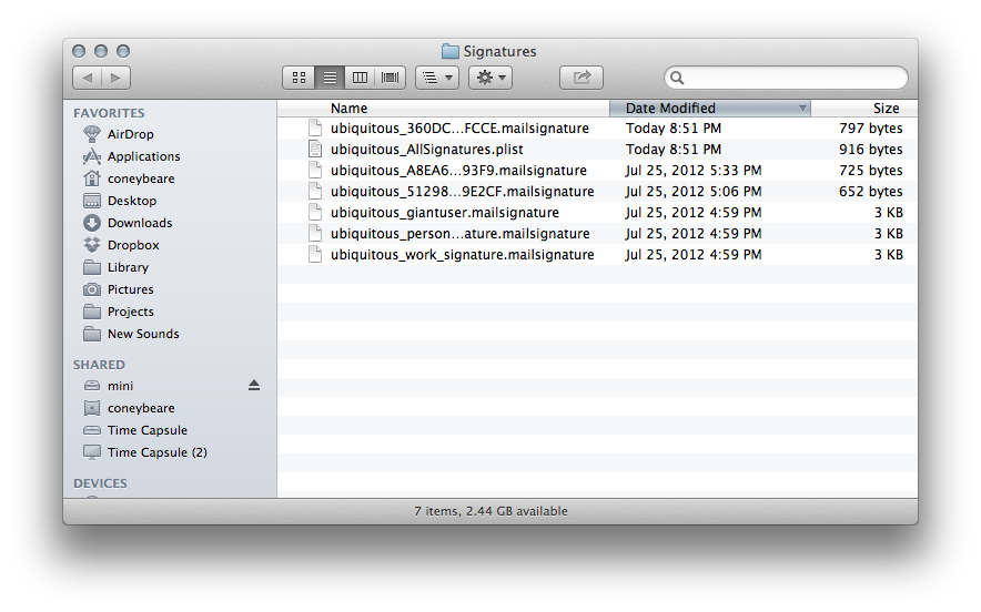 Look at the right side column — the file names — and notice the ones that end in .mailsignature.
