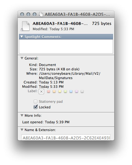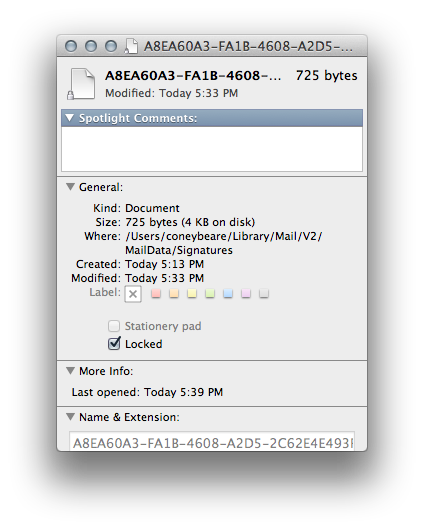 More specifically, we are looking for the placeholder signature file you created earlier. Locate the most recently modified .mailsignature file.