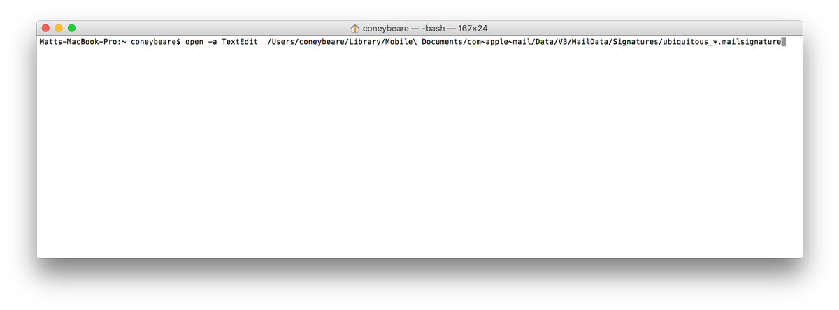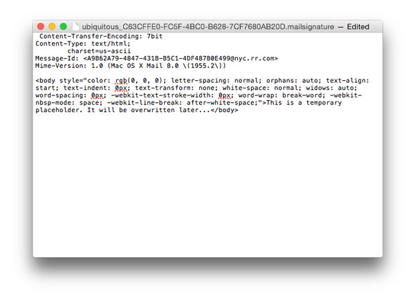 If you have more than one ubiquitout_XXXXXXX.mailsignature files open in TextEdit, we have to find the right one.