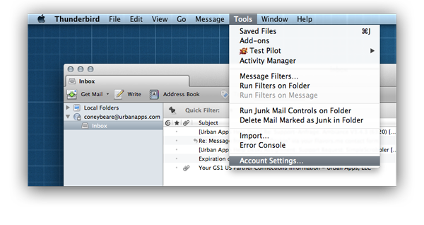 Open the Thunderbird application, then go to Tools > Account Settings.