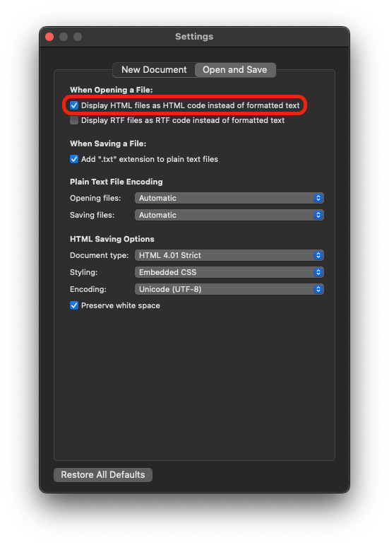 We are going to be using TextEdit to open code files in the following steps, so we need to ensure that it is setup properly to display the raw HTML code.